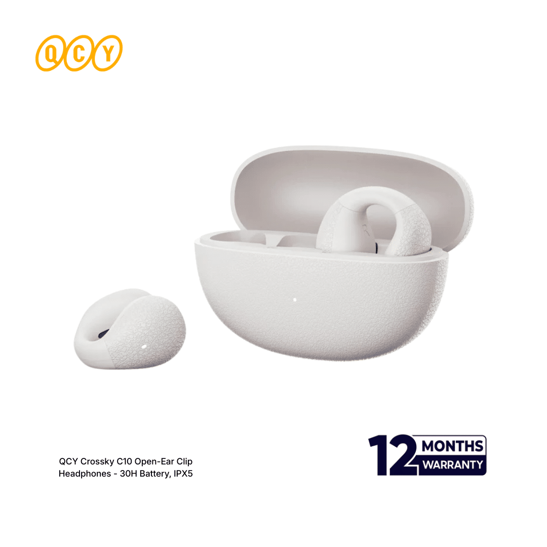 Experience music without isolation. The QCY Crossky C10 Open-Ear Wireless Headphones are engineered for an active, aware lifestyle. Featuring a unique clip-on design that rests comfortably outside your ears, they deliver vibrant audio while keeping you connected to your surroundings. With up to 30 hours of total battery life, advanced directional sound technology, and seamless multipoint connectivity, they are the perfect companion for work, sports, and relaxation. At Top Tech Zone, every product is 100% authentic and comes with an official warranty.