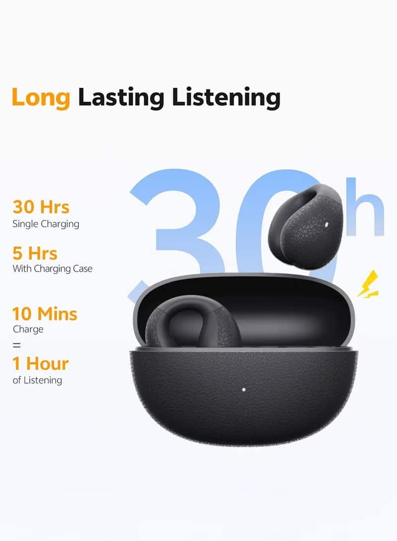 • Aesthetic Open-Ear Clip: A secure, lightweight clip rests comfortably on your ear without sealing the ear canal, eliminating pressure and discomfort during long wear.