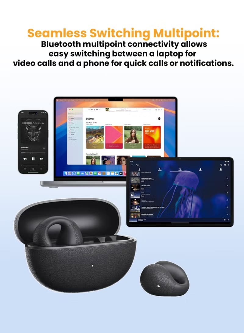 • Features: Open-Ear Clip Design, Multipoint Connectivity, Fast Charging