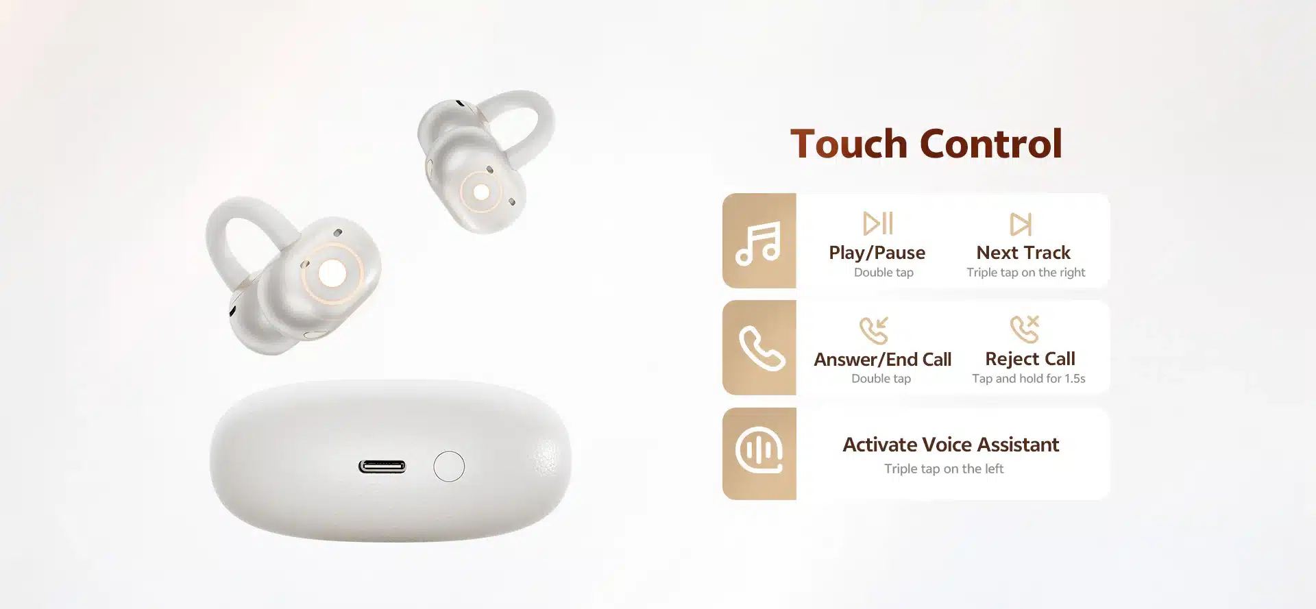 Ergonomic Open-Ear Clip Design: Provides a comfortable, pressure-free fit that stays securely in place during running, workouts, or daily commutes without sealing the ear canal.