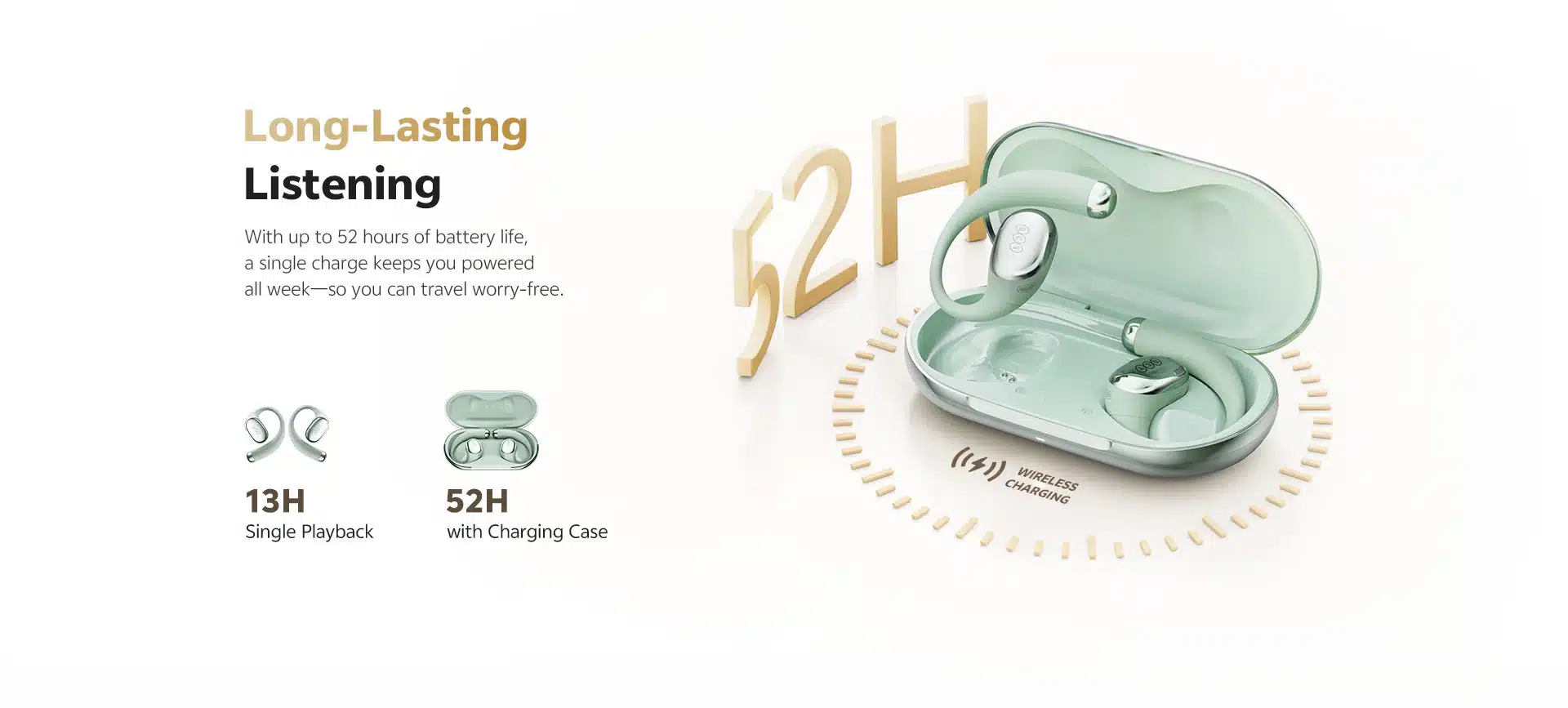 • Industry-Leading 52-Hour Battery: A massive 13 hours of single playback extends to 52 total hours with the charging case—enough to last a full week on a single charge.