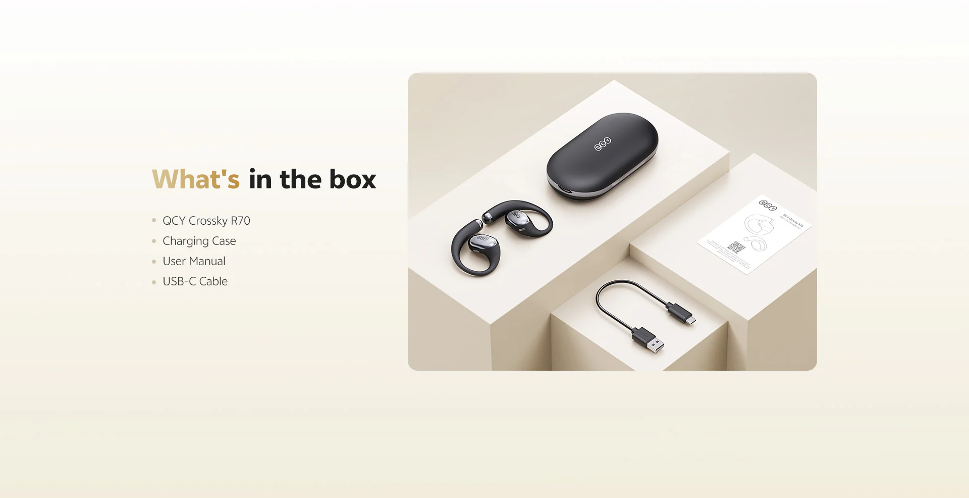• What’s in the Box: Headphones, Charging Case, USB-C Cable, User Manual